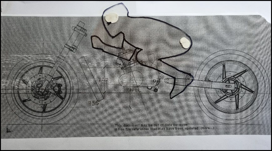 Below is a side view of our first bike layout concept dating back to April, the idea was to reduce frontal are for best possible top speed. Mmmmm, lots of issues here!