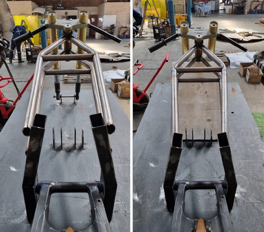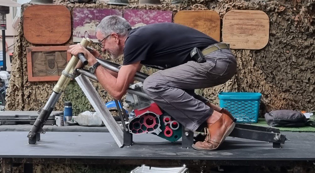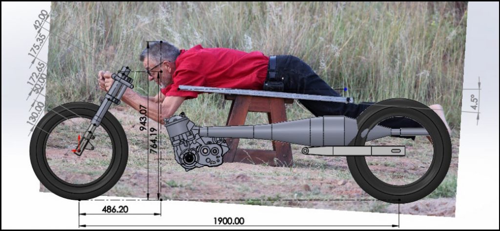Below follows a quick photo story of the first real world optimisations of my riding position when I started fabricating the frame in November. We strive for minimal frontal area to improve our top speed at Bonneville in August 2024. Land speed records stand and fall by wind resistance and horsepower. We have a great engine design, tuning and optimising of the engine can only start next year when the engine is built and running. Wind resistance is critical and we can do something about it right now, my racing journey has officially begun!