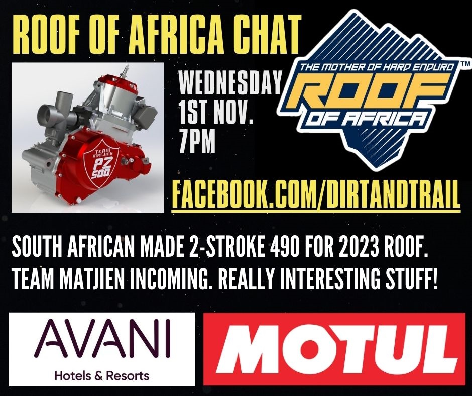 Join the Dirt and Trail Roof of Africa chat tonight Wed 1 November, 19:00 ZA time (17:00 GMT).